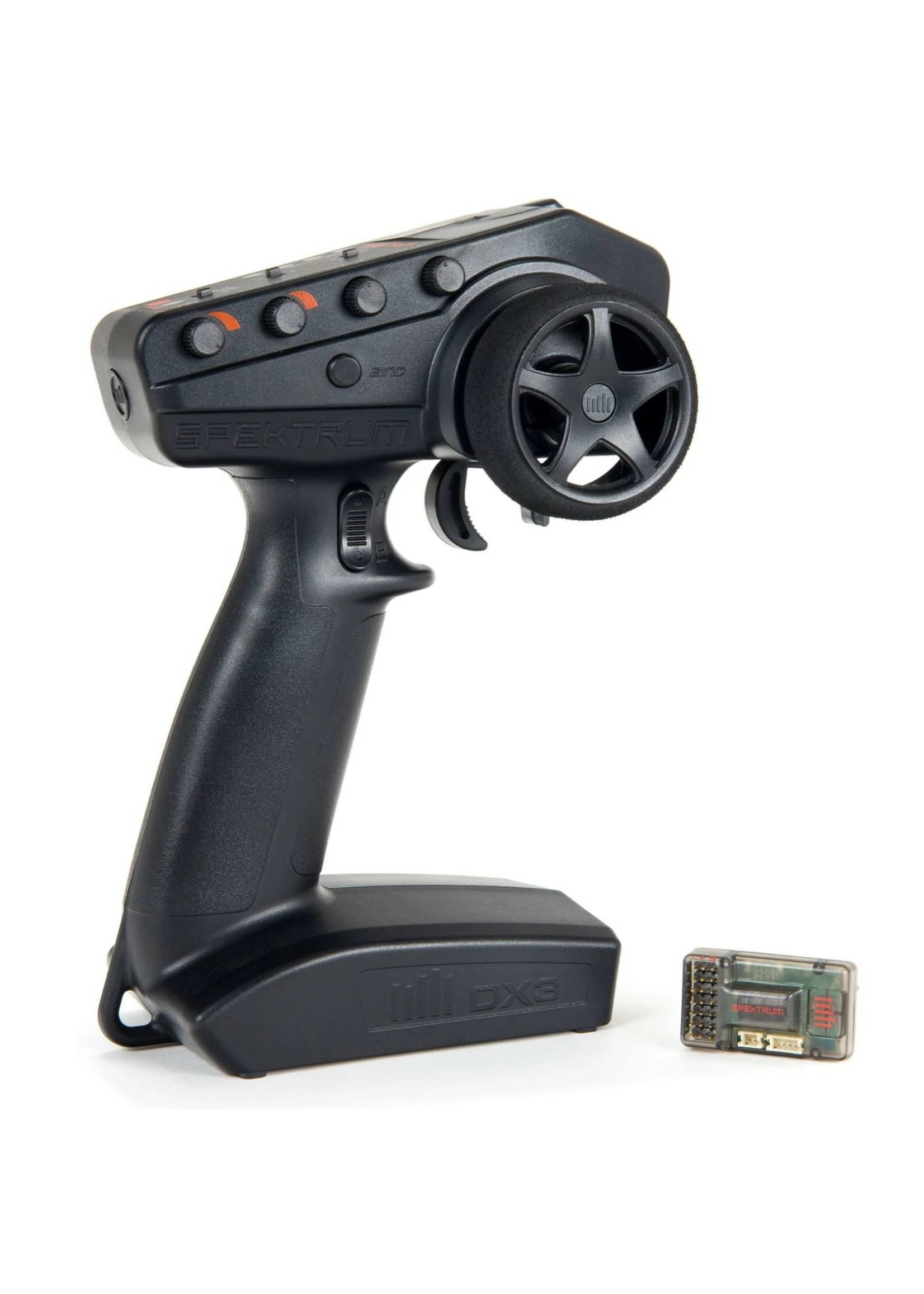 - Spektrum® 3-Channel DX3™ 2.4GHz DSMR® radio and SR6110AT Receiver with AVC® (Active Vehicle Control™)