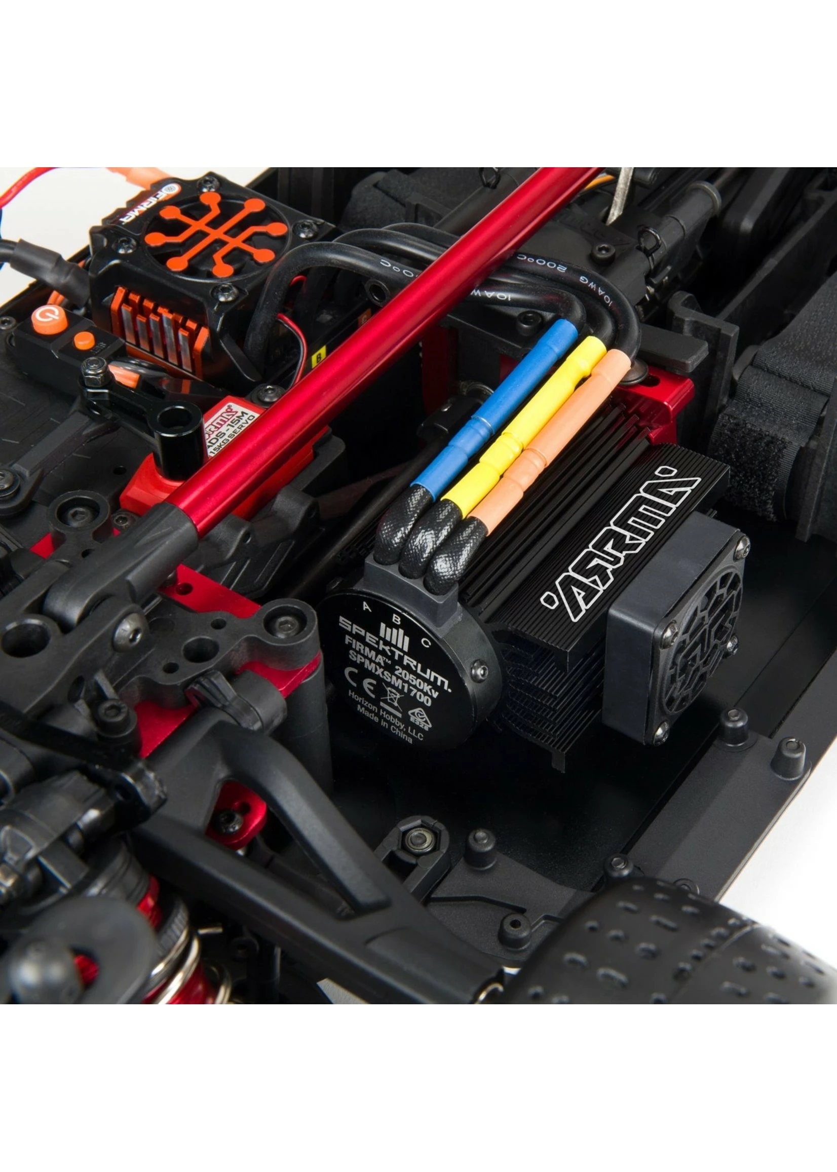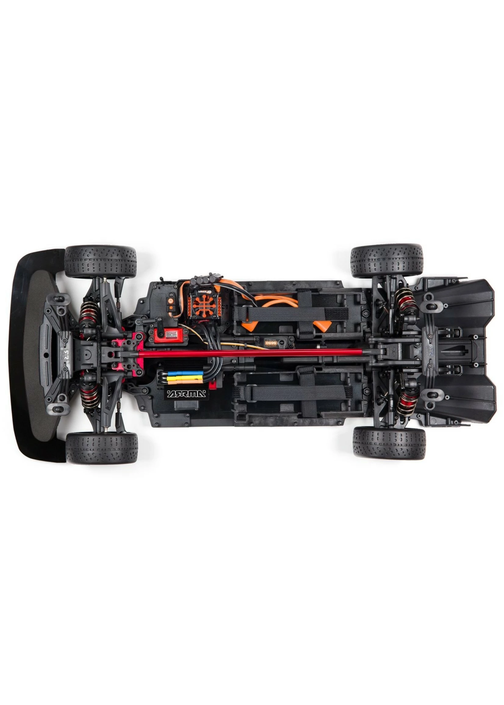ARRMA® has equipped the ready-to-run INFRACTIONâ„¢ 6S BLX 4WD with the 3-channel Spektrum® DX3â„¢ radio and an SR6110AT receiver featuring AVC® (Active Vehicle Controlâ„¢) technology for high-speed stability. A convenient voltage level indicator is built into the transmitter which lets you easily track on-board Smart battery power. The vehicle’s brushless power system also features Spektrum® Firmaâ„¢ Smart components, so it’s easy to receive real-time updates of ESC temperature, receiver (BEC) voltage, drive pack voltage and motor RPM. Just download the Spektrum® Dashboardâ„¢ app for iOS or Android, available for free at the App Store or Google Play.