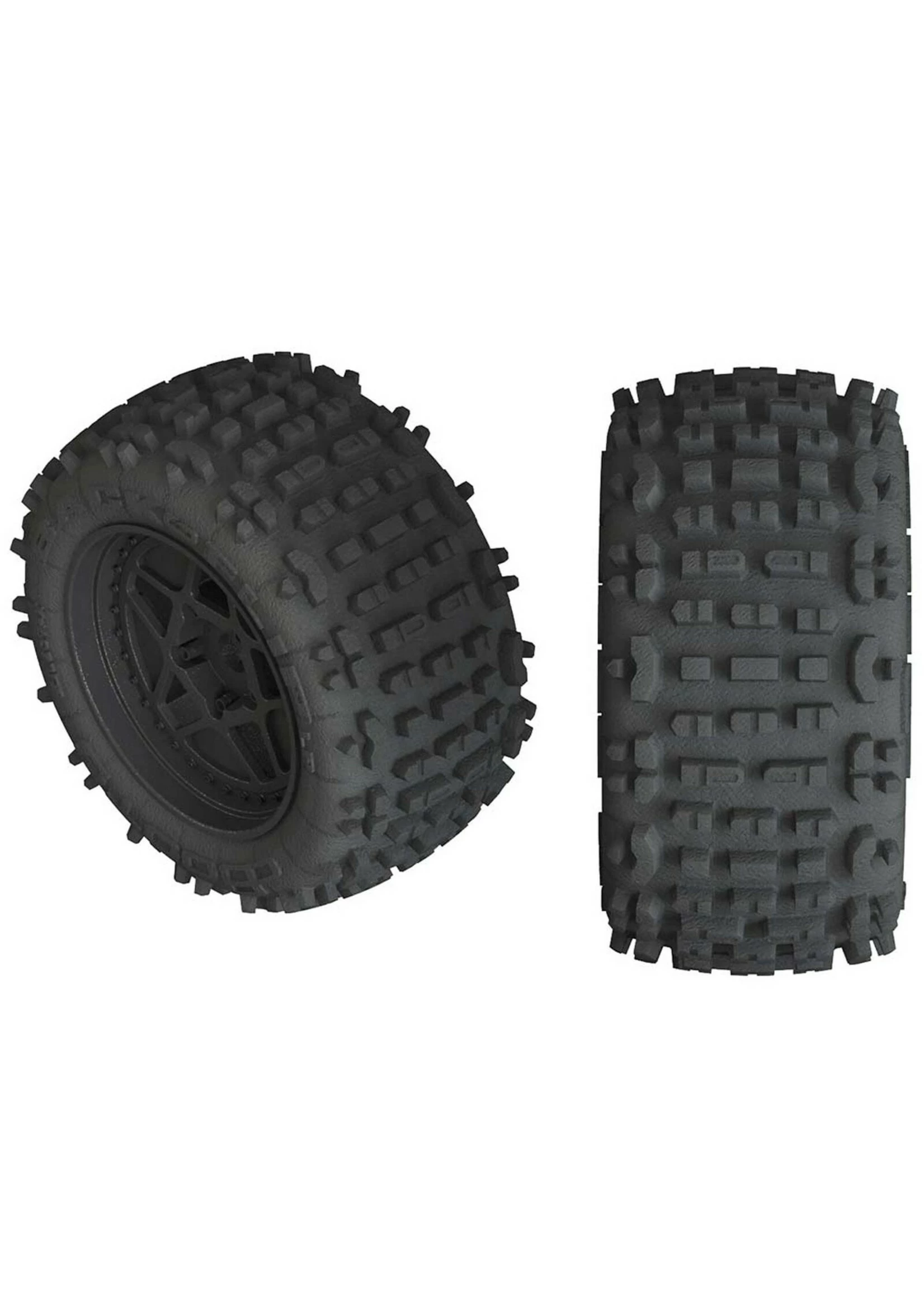 These high-quality dBoots Back-Flip LP tires, mounted on ARRMA wheels, are direct replacements for your kit items.