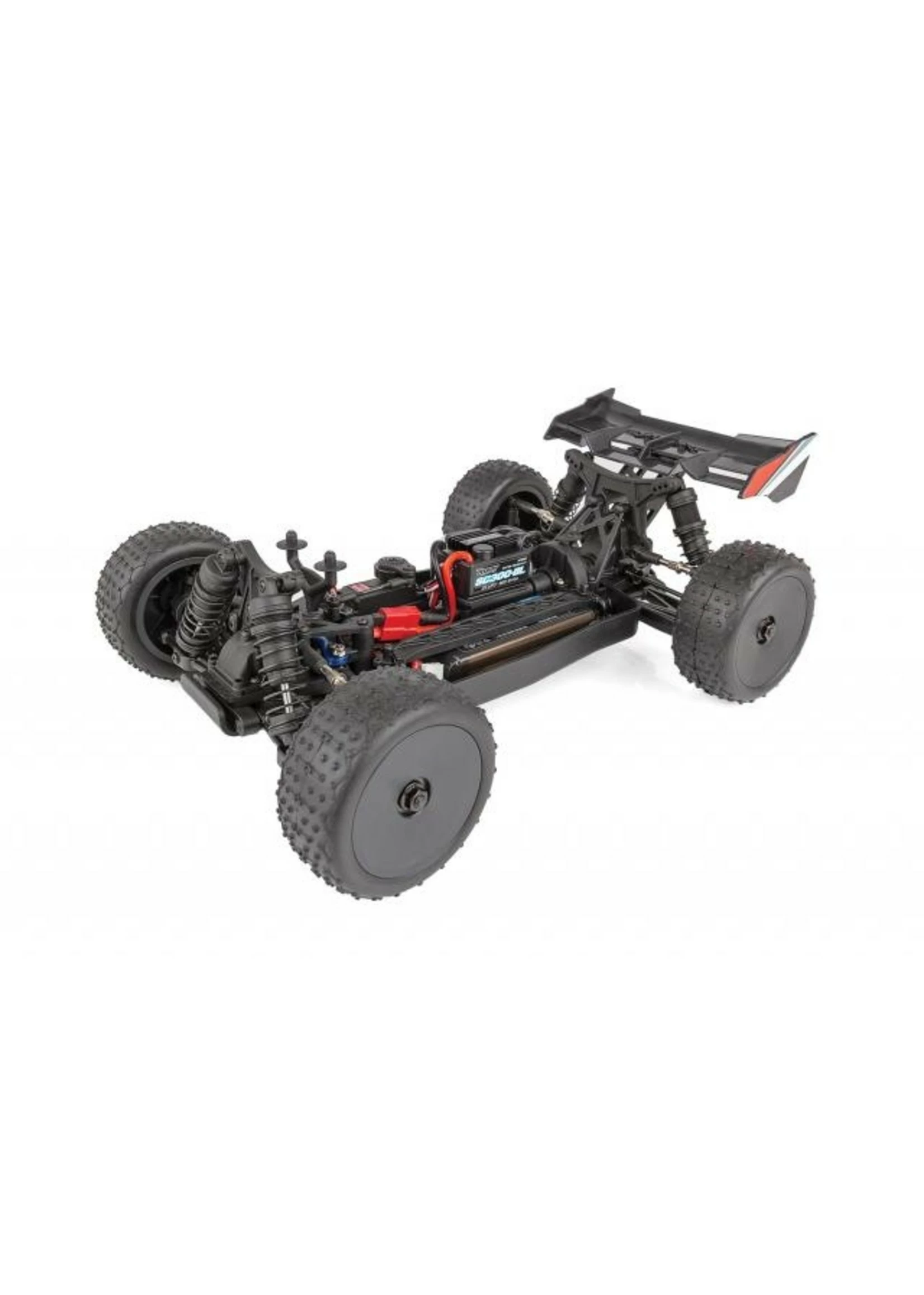 Team Associated’s 1:14 scale REFLEX 14T 4WD electric truggy comes out of the box already assembled, with a Reedy Power brushless speed control, brushless motor, high-torque digital steering servo, and 2.4GHz radio system. With all that power at your disposal, the truggy’s design effortlessly channels it into 4WD fun! The adjustability offered by the turnbuckles, caster blocks, and rear hubs make the REFLEX 14T ready for any terrain you can run on. Additional features include three sealed differentials, aluminum steering rack, and lightweight aluminum center driveshaft. Adding a battery pack to the REFLEX 14T RTR, you can now have big performance in a small-scale Ready-to-Run package! Think small. Win big.