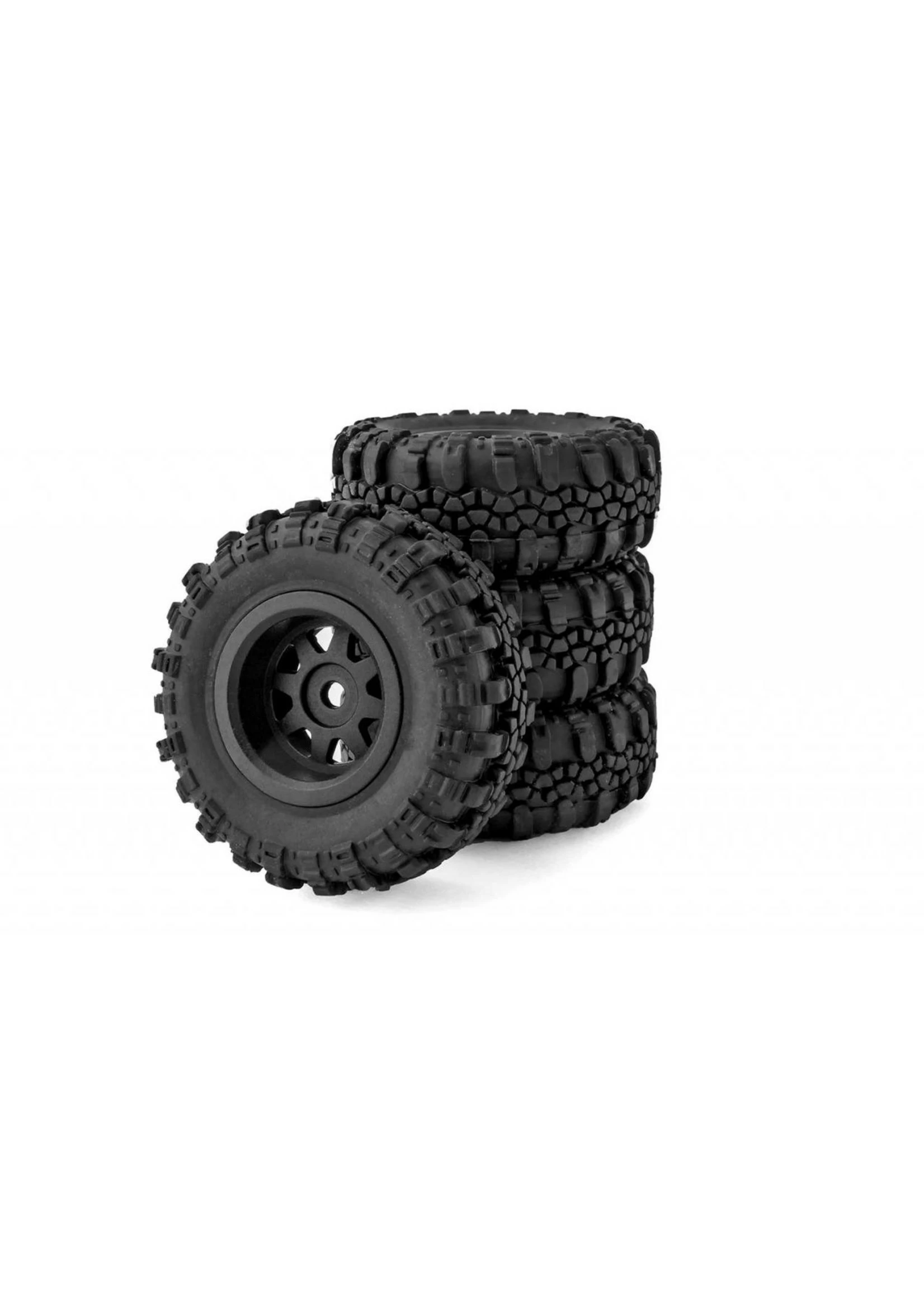 WHEELS and TIRES: Crawl, grip and climb over obstacles with black, injection-molded single-piece rims wrapped in soft compound rubber tires.