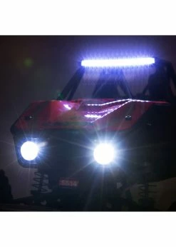 A roof mounted LED light bar helps light the way on those late night crawls with your friends. LED Light bar and two front mounted LED lights are included.