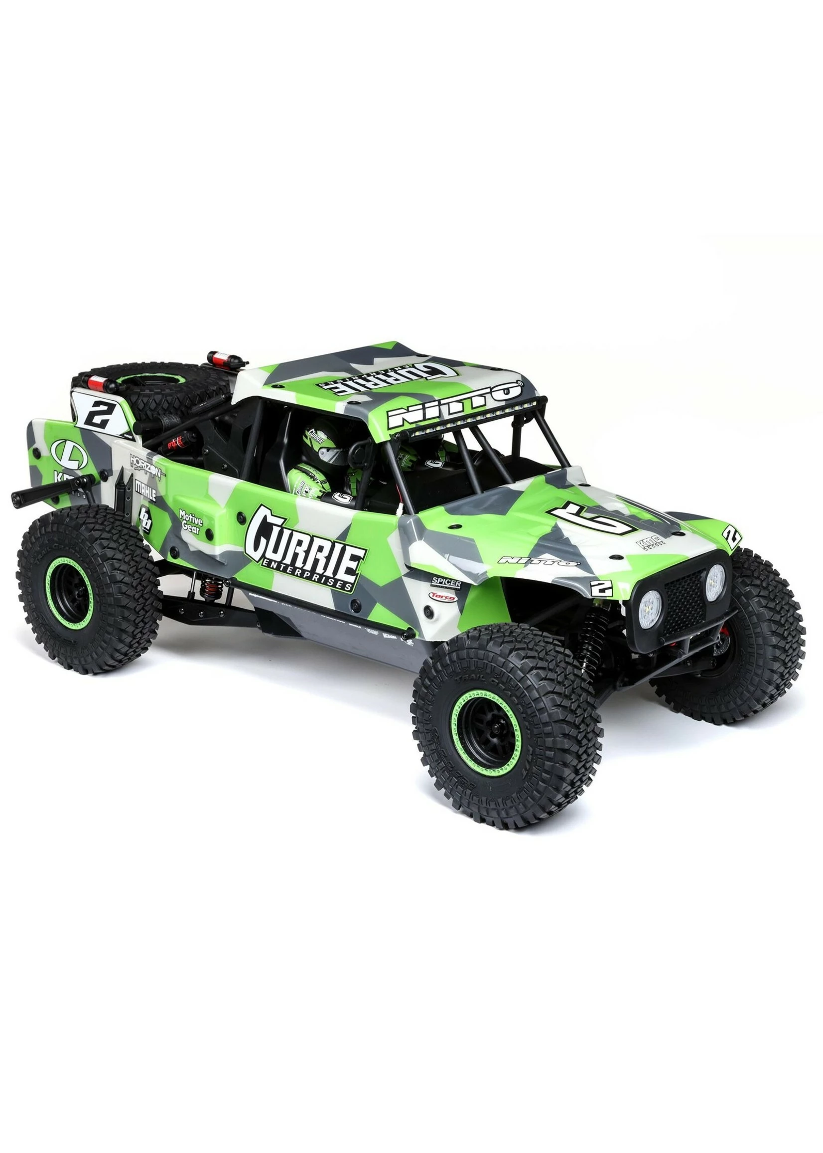 The Losi® Hammer Rey® is a SMART, Ready-to-Run Rock Racer with AVC®. It is officially licensed and based off Casey Currie’s U4 Racer. It’s powered with a Spektrum™ 3150Kv brushless motor and managed by the Smart 130A ESC, 6-channel DSMR AVC/telemetry receiver, and the new DX3 transmitter that provides Spektrum Smart feedback including live battery voltage. Along with the officially licensed design, the Hammer Rey includes KMC wheels, Nitto tires, and additional details such as new shock reservoirs, fire extinguishers, and new light bars. It comes equipped with a solid rear axle, independent front suspension, and oil-filled shocks, so you can tear across all types of rocky off-road terrain. And you’ll do so with the full-throttle freedom that only AVC® technology can provide. The Hammer Rey is ideal for victory-minded off-road enthusiasts looking for the top-of-the-line RC experience with the inclusion of AVC and the three-position limiting switch. With the Hammer Rey, Losi continues to push the limits when it comes to scale details, performance and officially licensed products.