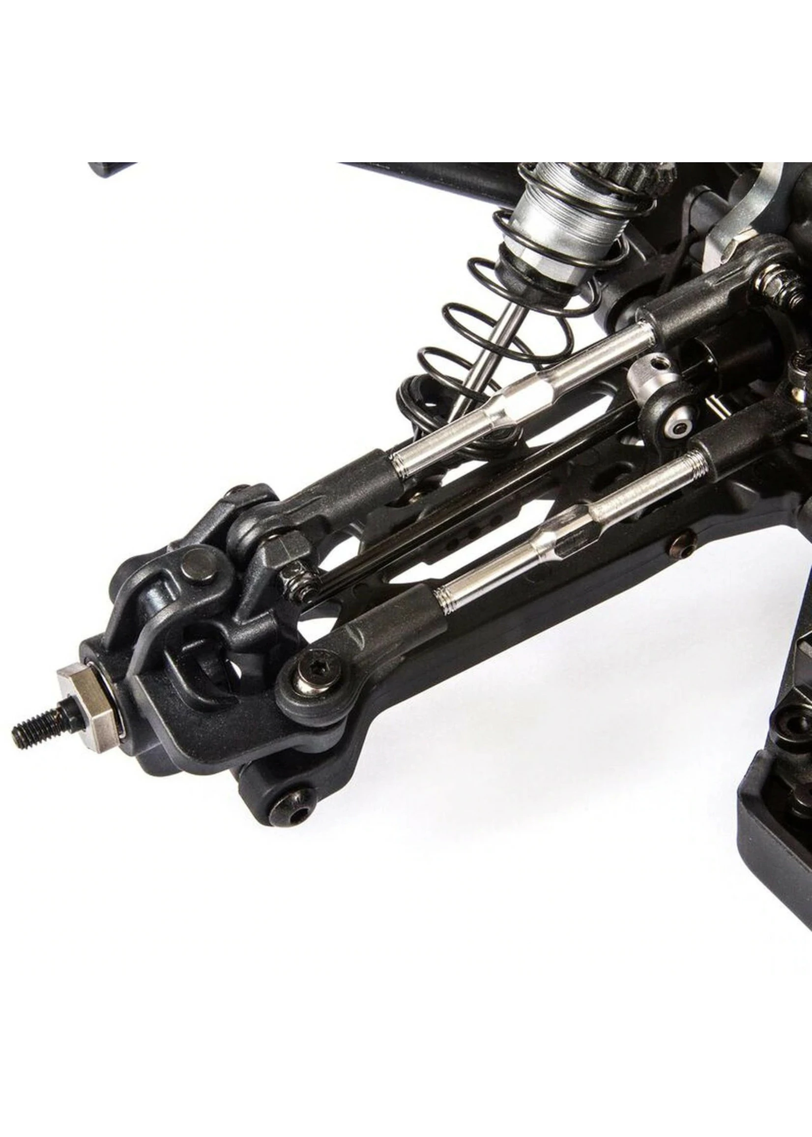 - 12mm race inspired aluminum bodied shock absorbers and caps