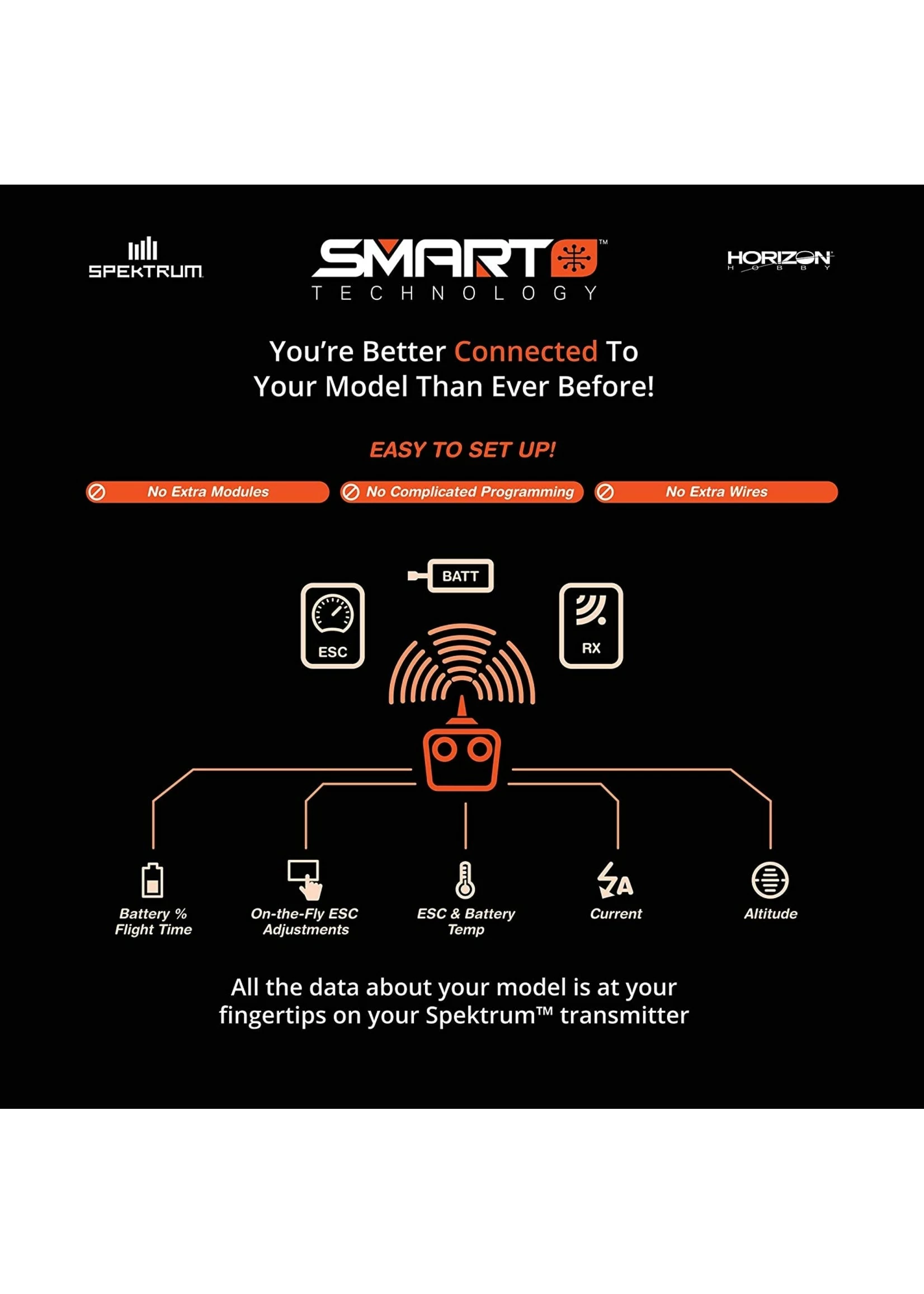 Like every component in the Spektrumâ„¢ Smart ecosystem, Avianâ„¢ Smart ESCs combine “plug-and-play” simplicity with the ability to communicate with other Smart electronics — together, creating the best-performing RC system for your aircraft imaginable.