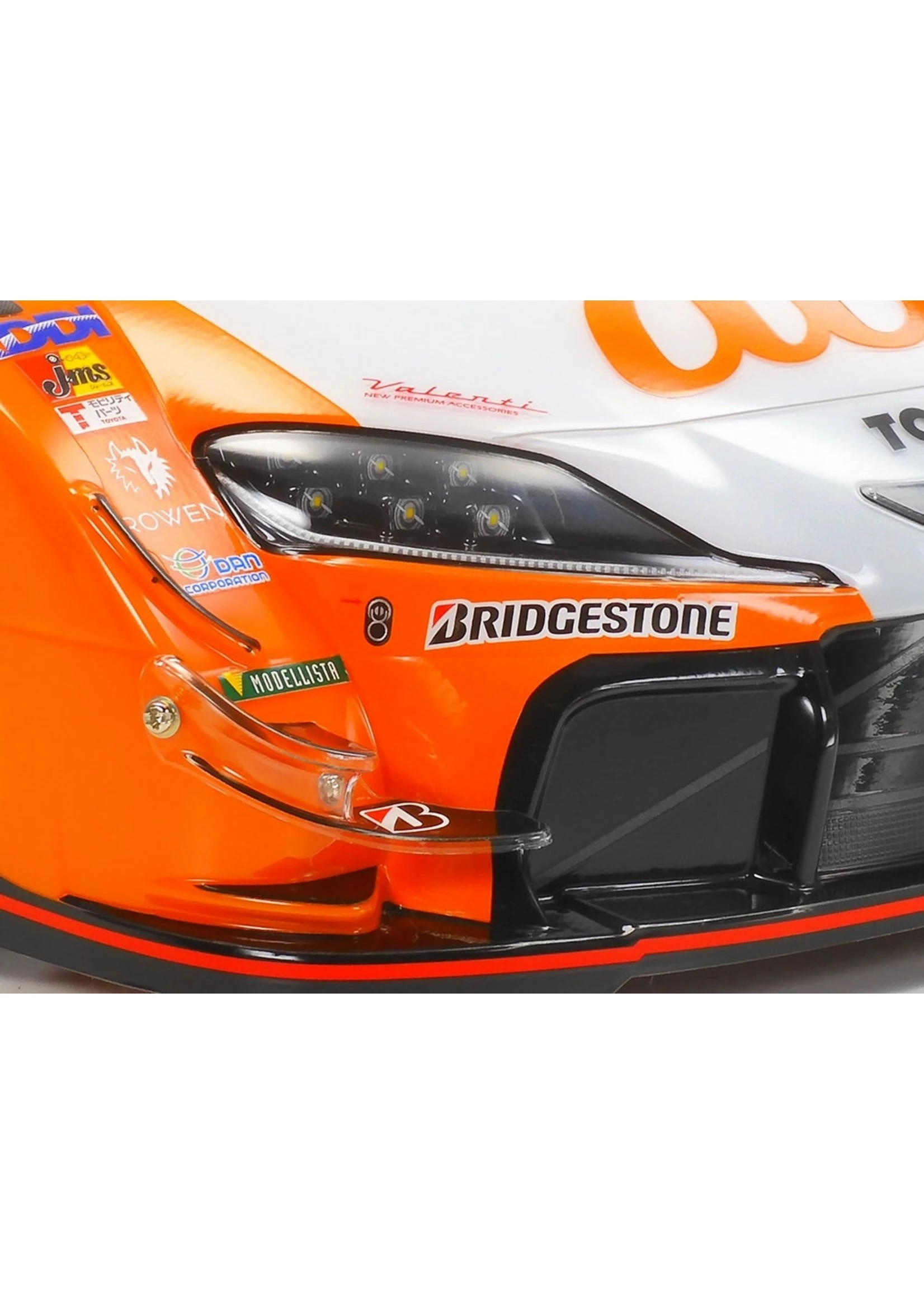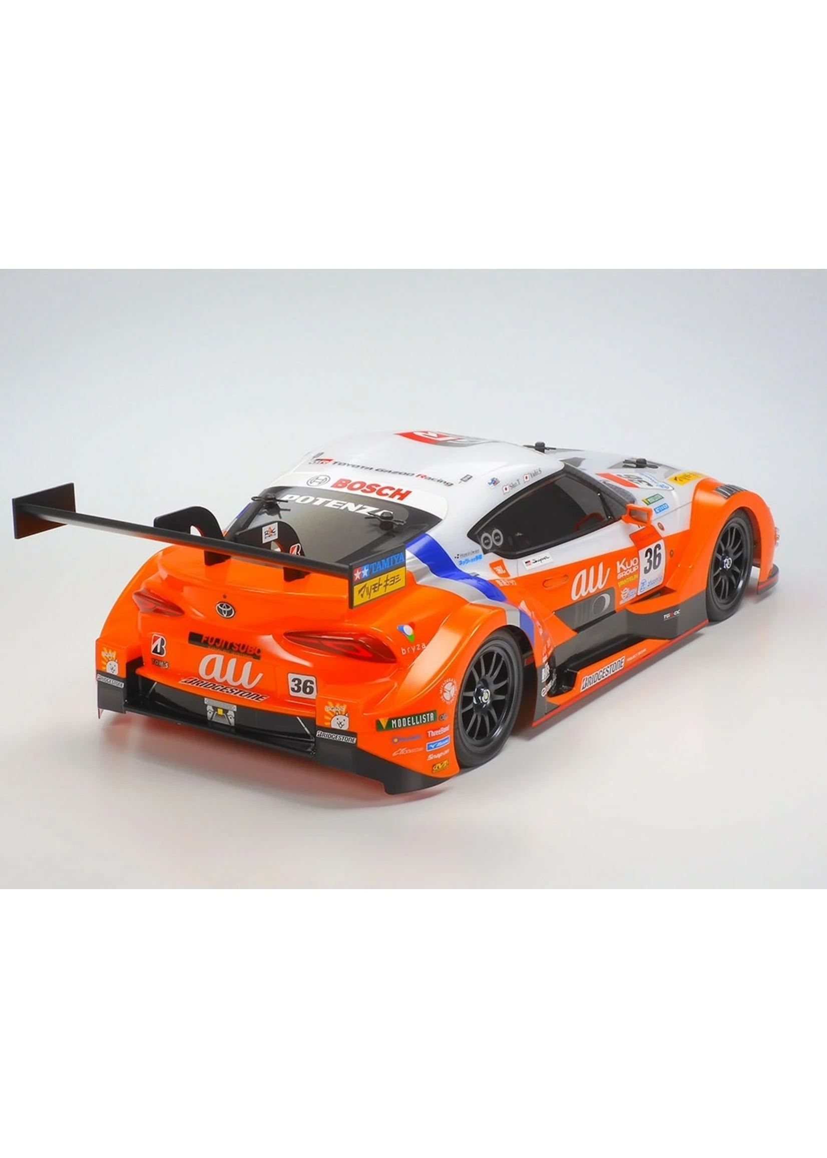 This R/C model recreates the Toyota GR Supra GT500. The GR Supra GT500 was developed in accordance with GT500 class regulations as a replacement for the LEXUS LC500 which flourished in three seasons from 2017 to 2019. With the streamlined car design of the roadgoing GR Supra, this racing car features a carbon monocoque frame, dedicated aerodynamic components and transmission, plus a 2,000cc inline 4-cylinder direct injection turbo-charged engine βRI4AG.β