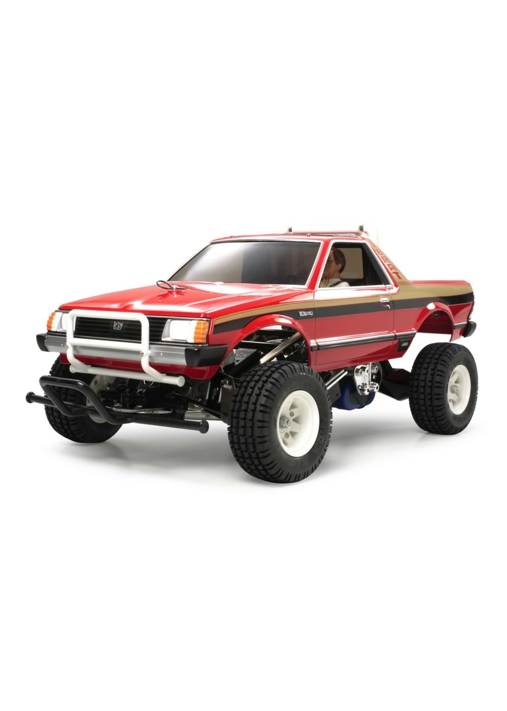 The Subaru Brat was made solely for export, and achieved tremendous popularity in the U.S. market in the 1970s. Tamiya first produced an R/C version of this popular little truck back in 1983, and is now proud to present an updated, improved re-release of this classic R/C truck. Aside from the upgraded internal parts, this assembly kit comes with a driver figure for a nostalgic feel. In addition, both a super-detailed resin body for shelf display and a lightweight durable polycarbonate body for racing are included.