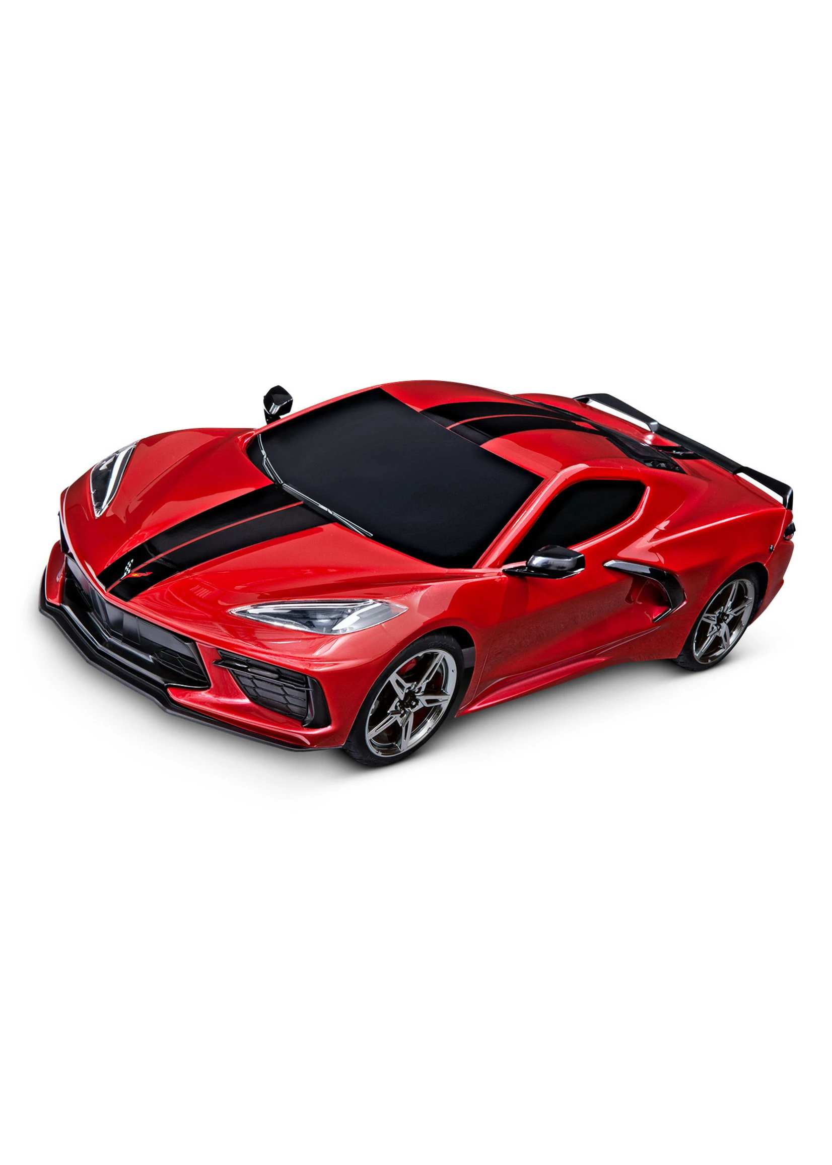 The name synonymous with American sports car excellence: Corvette. Traxxas delivers the spirit and excitement of the all-new mid-engine Corvette in exacting scale detail on the new, larger 4-Tec 3.0 chassis. The new Traxxas 4-Tec 3.0 puts supercar performance in your hands with a new long-wheelbase, wide-track design. The faceted, Corvette Stingray body and its massive side intakes are duplicated to the millimeter. The simulated LT2 V8 is visible beneath the rear hatch. Authentic black-chrome wheels fill the fenders. Beautiful to display—with Traxxas performance that demands you to drive.