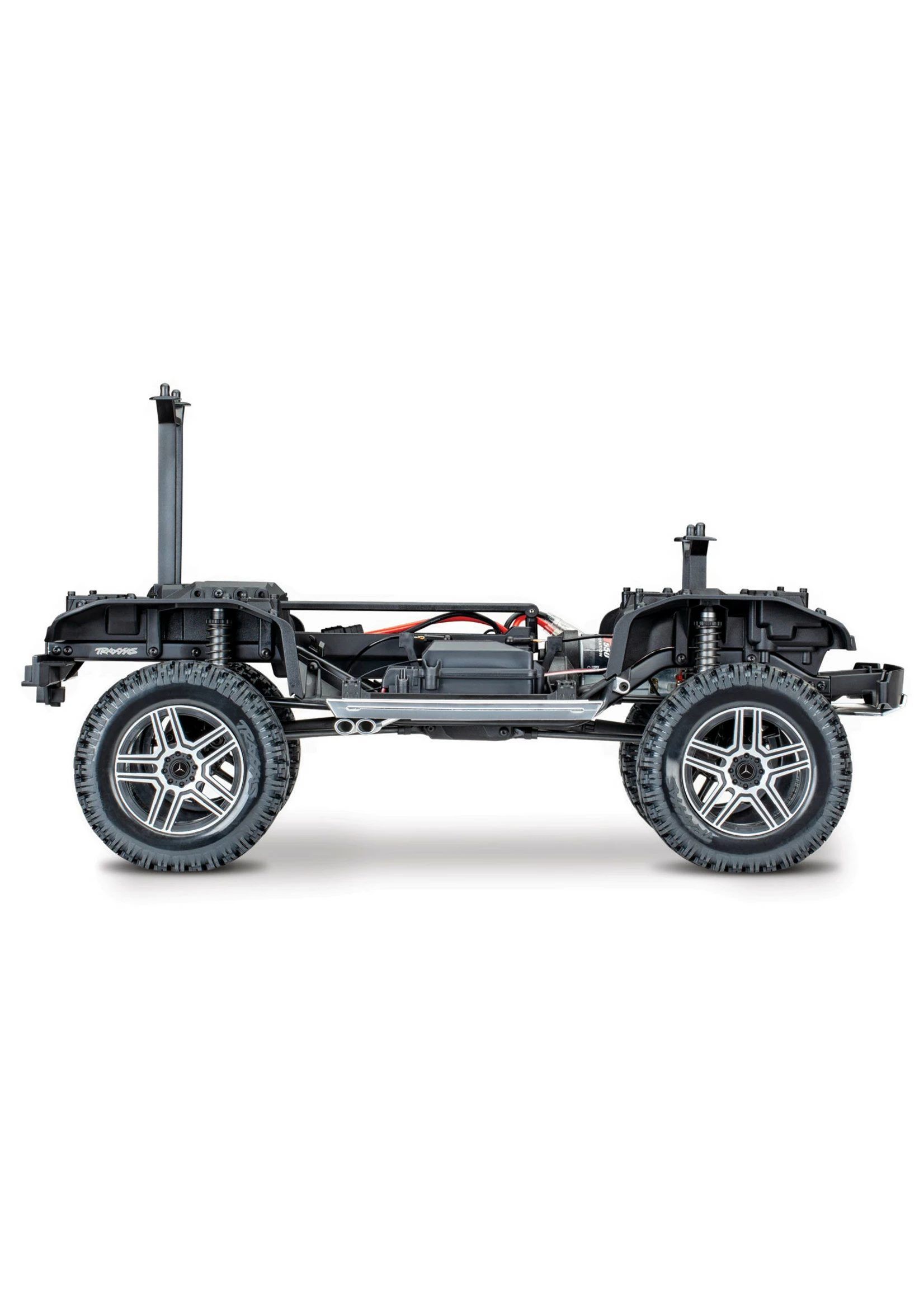 In 2015, Mercedes-Benz released the limited-production G 500 4×4² to stake its claim as the ultimate off-road vehicle. Outfitted with a powerful V8 engine, dynamic 4WD system, and military-grade portal axles, the G 500 4×4² had no equal. Traxxas honors the engineering masterpiece that is the G-Class with this highly-detailed RC replica. Based on the class-leading TRX-4®, the Traxxas Mercedes-Benz G 500 4×4² features portal axles, a high/low transmission, and locking differentials for superior all-terrain capability. The highly detailed body with unique wheels and tires makes this truck a fitting tribute to the legendary original.